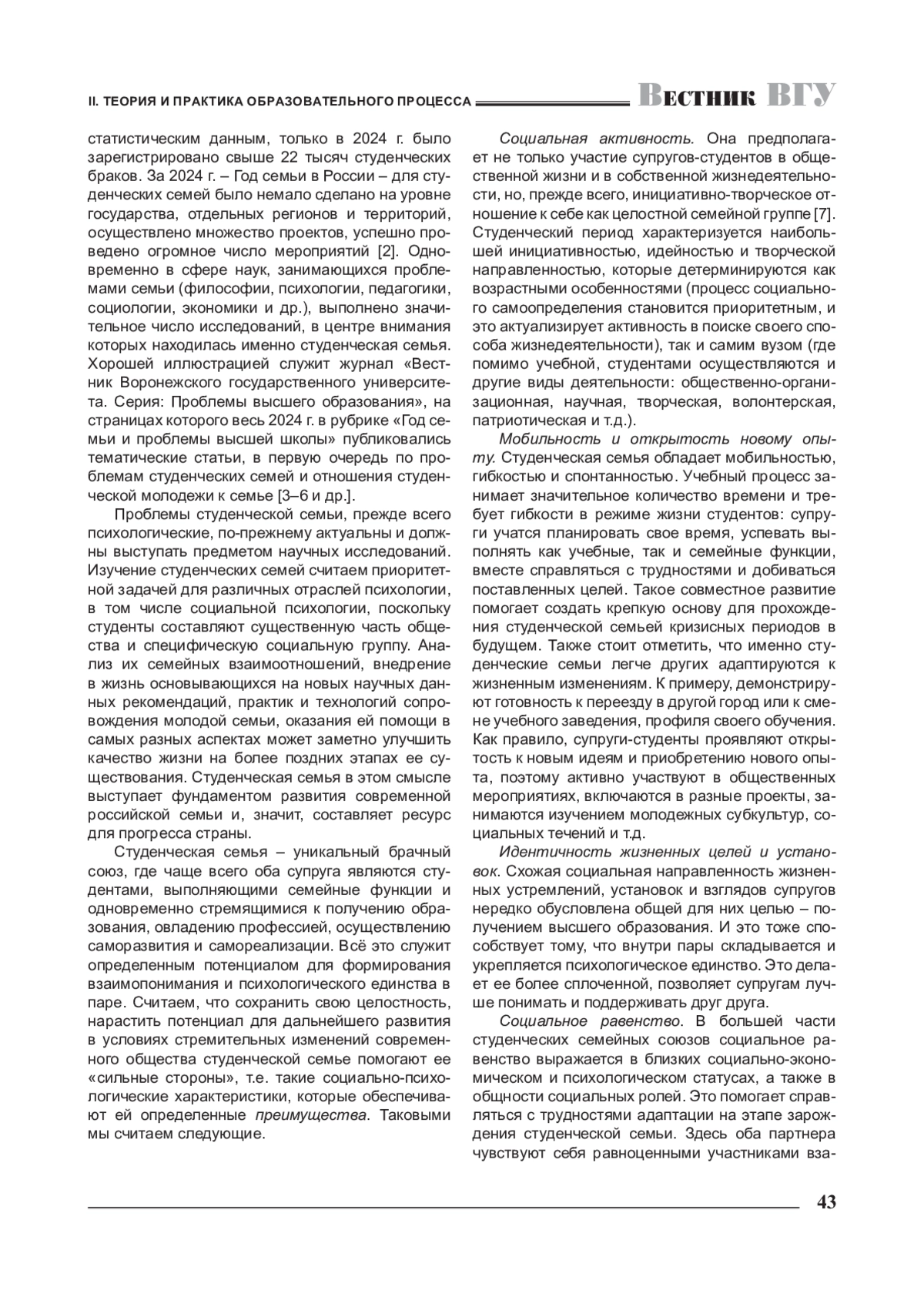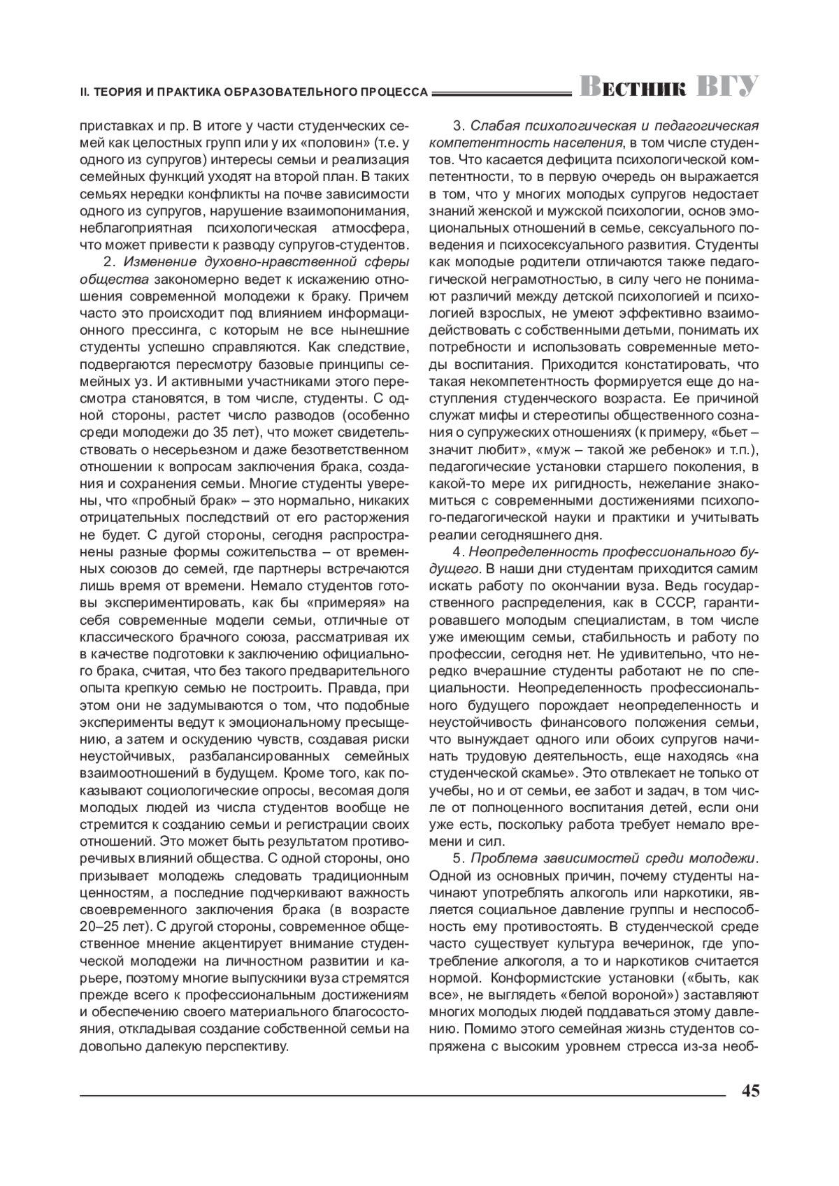 4. 	Ковтуненко Л. В. Представления студенческой молодежи о семье и семейных отношениях / Л. В. Ковтуненко // Вестник Воронежского государственного университета. Серия: Проблемы высшего образования. - 2024. - № 2. - С. 92-95. EDN: AVPUXX