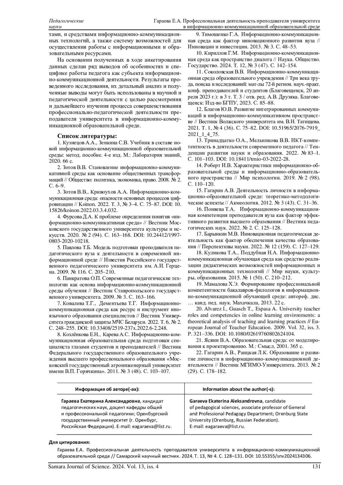 13. 	Тринадцатко О.А., Мельникова В.В. ИКТ-компетентность в деятельности современного педагога // Тенденции развития науки и образования. 2022. № 83-1. С. 101-103. DOI: 10.18411/trnio-03-2022-28 EDN: IOXJDV