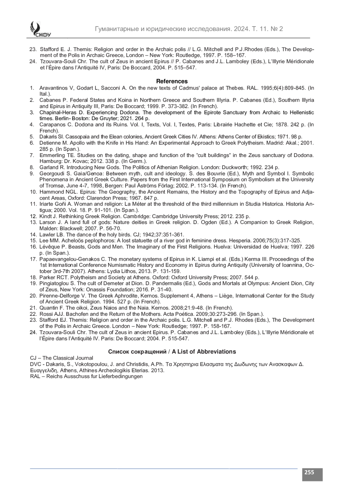 24. Tzouvara-Souli Chr. The cult of Zeus in ancient Epirus // P. Cabanes and J.L. Lamboley (Eds.), L’Illyrie Méridionale et l’Épire dans l’Antiquité IV, Paris: De Boccard, 2004. P. 515-547.