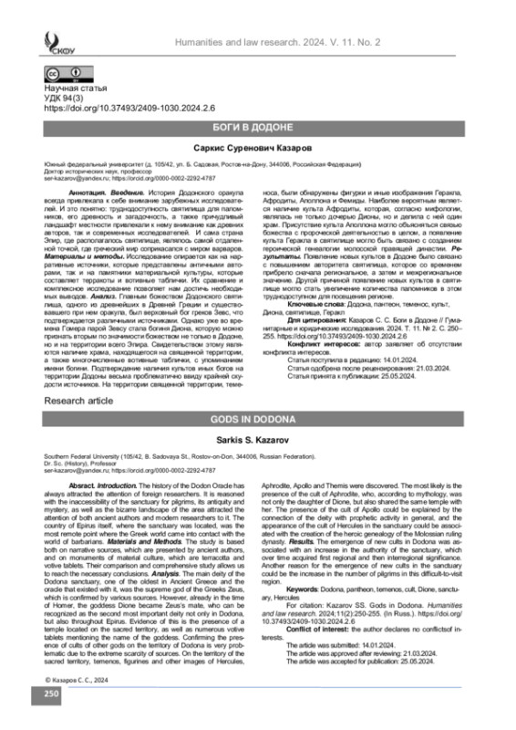 Введение. История Додонского оракула всегда привлекала к себе внимание зарубежных исследователей. И это понятно: труднодоступность святилища для паломников, его древность и загадочность, а также причудливый ландшафт местности привлекали к нему внимание как древних авторов, так и современных исследователей. И сама страна Эпир, где располагалось святилище, являлось самой отдаленной точкой, где греческий мир соприкасался с миром варваров.