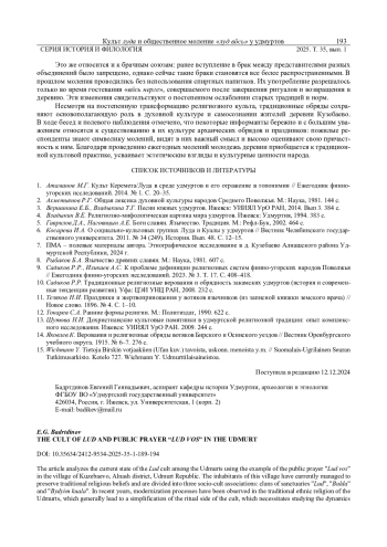 10. 	Садиков Р.Р. Традиционные религиозные верования и обрядность закамских удмуртов (история и современные тенденции развития). Уфа: ЦЭИ УНЦ РАН, 2008. 232 с. EDN: QPMSGH