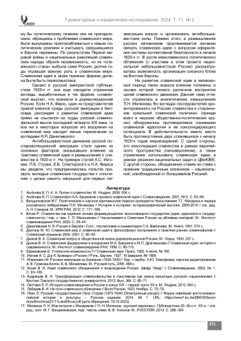 Введение. В основе статьи – проблема формирования представлений о славянской идее в публицистике Русского Зарубежья 1920-х годов.