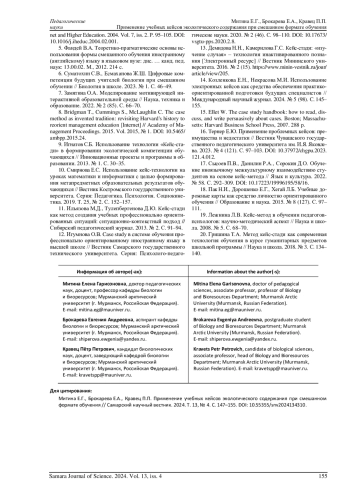 14. 	Козленкова Е.Н., Некрасова М.И. Использование электронных кейсов как средства обеспечения практико-ориентированной подготовки будущих специалистов // Международный научный журнал. 2024. № 5 (98). С. 145-155. EDN: XIKHQK