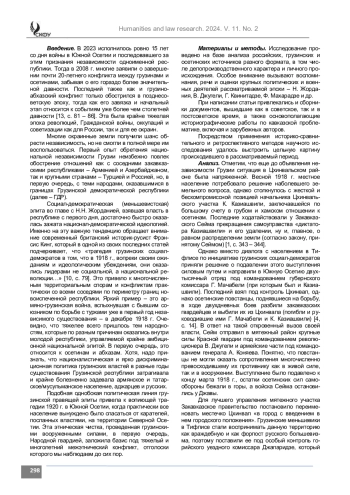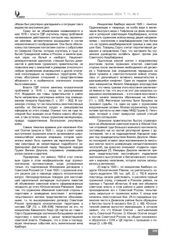 Введение. В статье рассматриваются предыстория, причины и начальный этап грузино-осетинского конфликта, завязанные на агрессивной и националистической политике властей Грузинской демократической республики в период независимости – 1918–1921 гг.