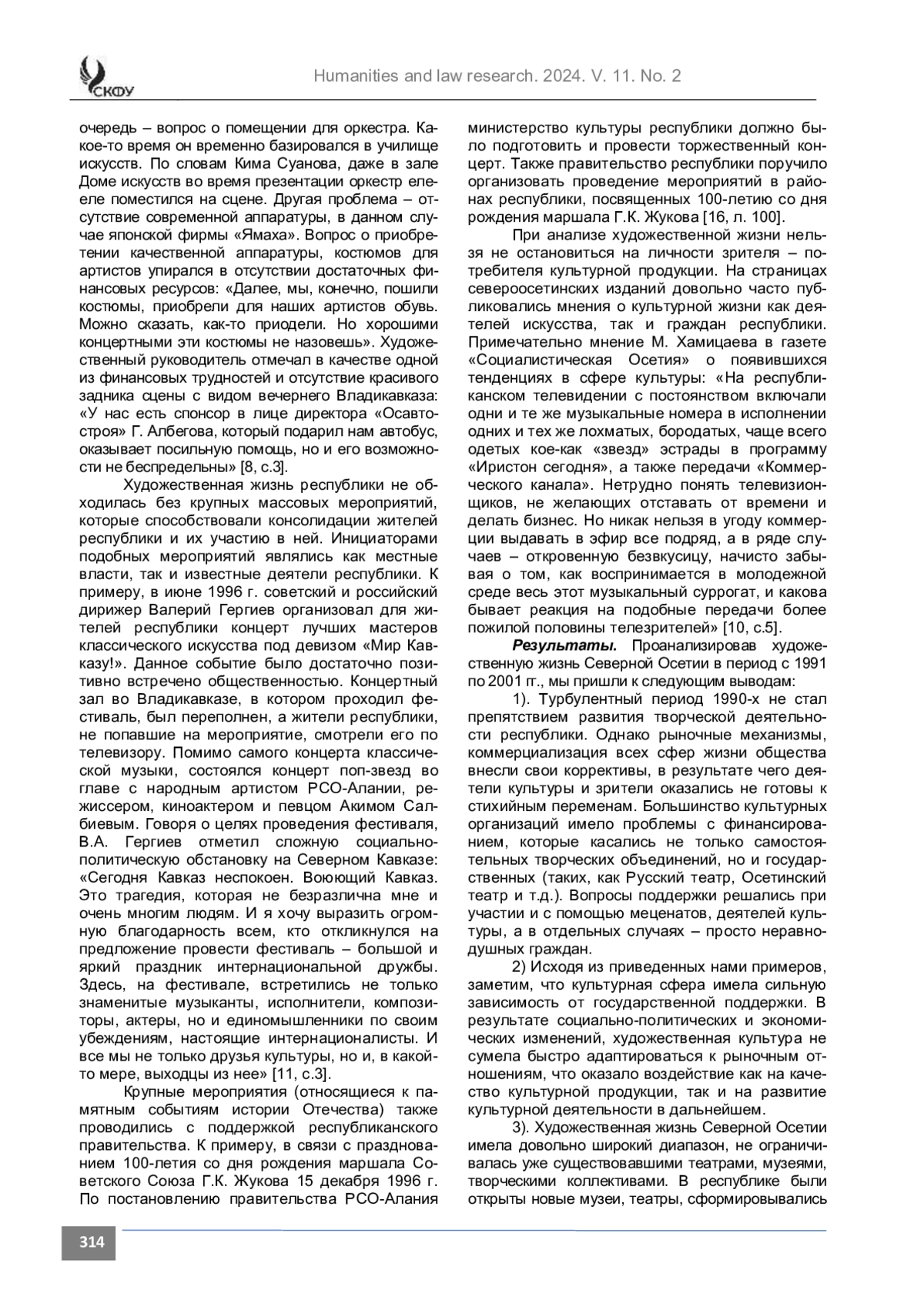 5. Канукова З. В., Туаева Б. В., Плиева З. Т. Художественная культура в процессах формирования гражданской идентичности // Известия СОИГСИ. 2017. № 25 (64). С. 77-87.