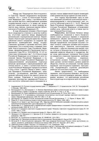 7. Зорькин В. Д. Буква и дух Конституции URL: https://rg.ru/2018/10/09/zorkin-nedostatki-v-konstitucii-mozhno-ustranittochechnymi-izmeneniiami.html. (дата обращения: 02.11.2023).