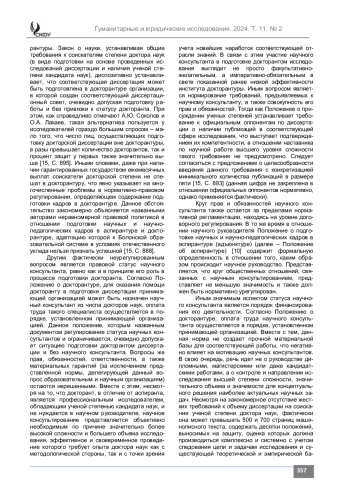 Возможное совершенствование механизма финансирования деятельности научных консультантов делает более актуальным вопрос ответственности за полученные результаты, который в настоящее время также не урегулирован. В значительной степени данная проблема решается вне нормативного регулирования, будучи охваченной таким понятием, как деловая репутация исследователя.