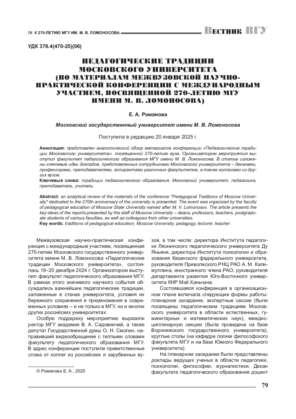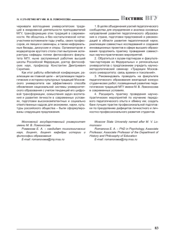 Межвузовская научно-практическая конференция с международным участием, посвященная 270-летию Московского государственного университета имени М. В. Ломоносова «Педагогические традиции Московского университета», состоялась 19–20 декабря 2024 г.