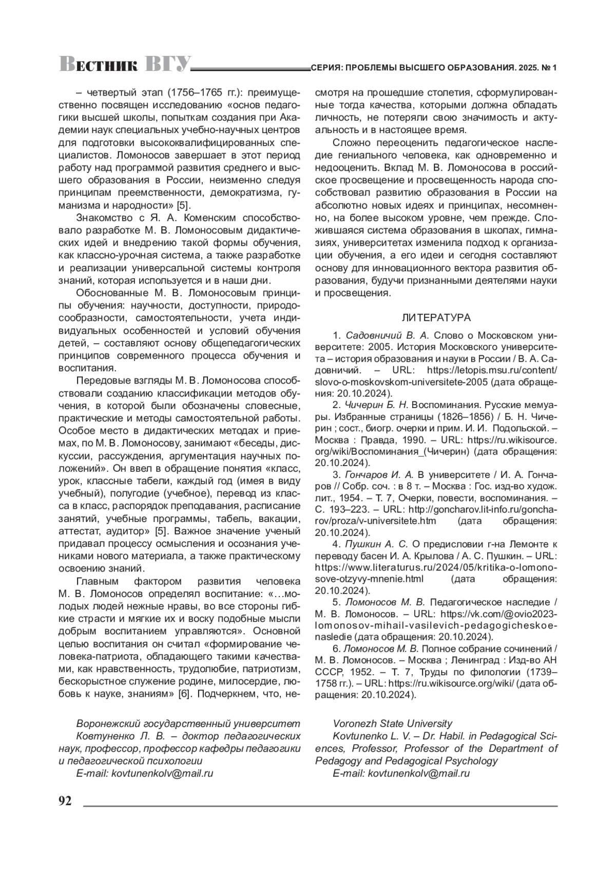 1. 	Садовничий В. А. Слово о Московском университете: 2005. История Московского университета - история образования и науки в России / В. А. Садовничий. - URL: https://letopis.msu.ru/content/slovo-o-moskovskom-universitete-2005 (дата обращения: 20.10.2024).