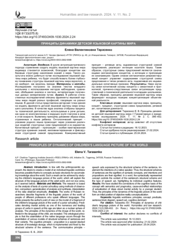 Введение. В русле антропоцентрического подхода стремление создать модель языковой картина мира индивида становится возможной, благодаря концептам как базовым структурам накопления знаний о мире. Такого результата можно добиться путем исследования языковой картины мира ребенка, что будет способствовать более глубокому пониманию структуры языковой картины мира взрослого, а не наоборот, как казалось прежде.