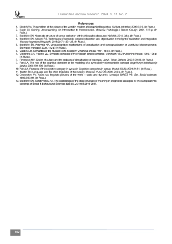13. Bredikhin S. N., Serebryakov A. A. The explicitness of the deep structure of meaning in prognostic strategies // The European Proceedings of Social & Behavioural Sciences EpSBS. 2019. Vol. 58. P. 2549-2557.