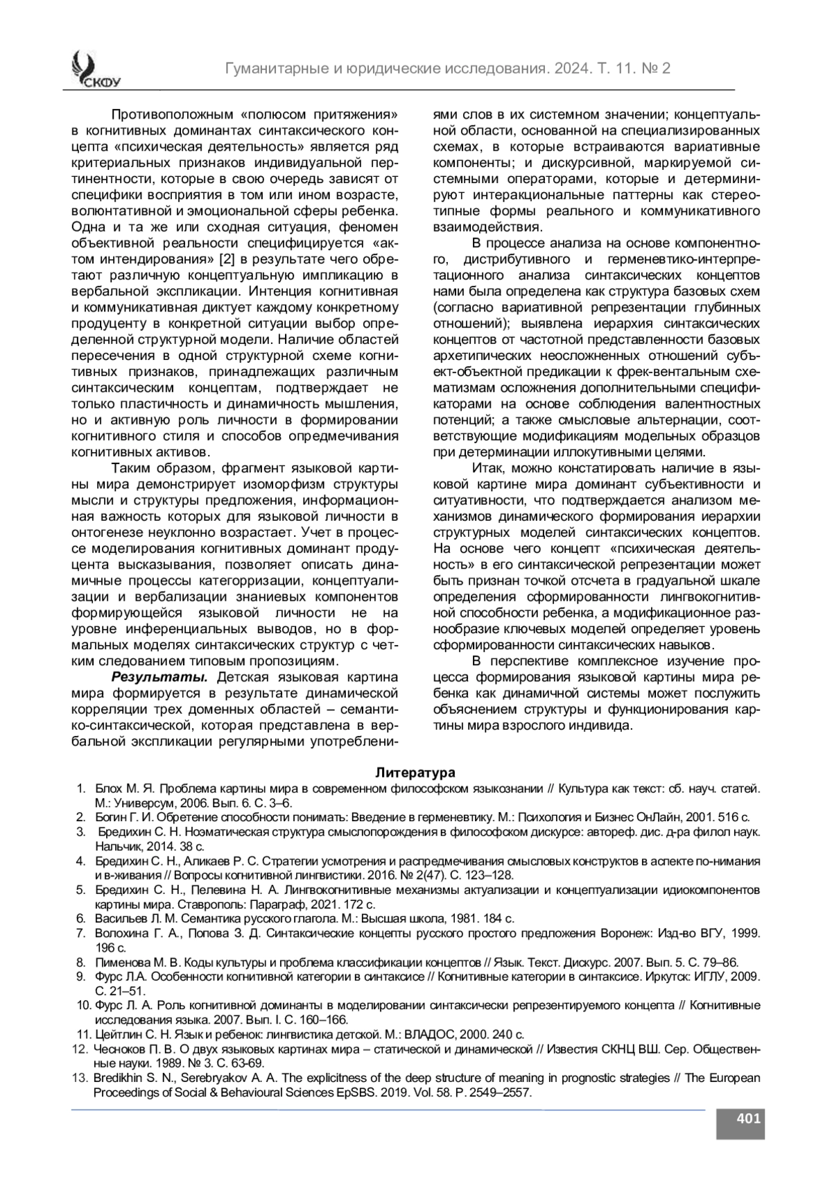 5. Бредихин С. Н., Пелевина Н. А. Лингвокогнитивные механизмы актуализации и концептуализации идиокомпонентов картины мира. Ставрополь: Параграф, 2021. 172 с.