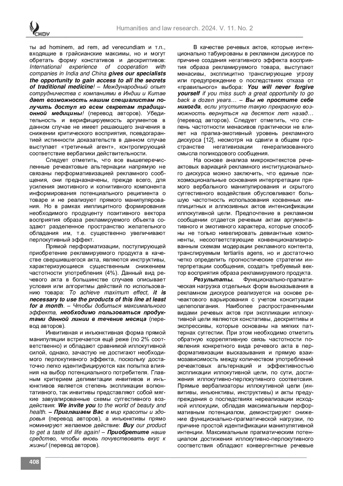 8. Иоанесян Е. Р. Иллокутивные показатели: сравнительно-типологический аспект. Научный диалог. 2023. № 12(8). С. 143-155. https://doi.org/10.24224/2227-1295-2023-12-8-143-155