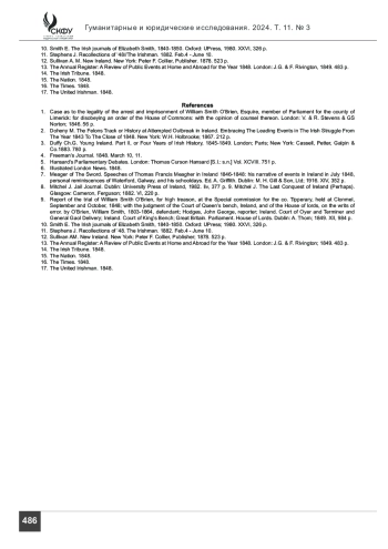 8. Mitchel J. Jail Journal. Dublin: University Press of Ireland, 1982. liv, 377 p. 9. Mitchel J. The Last Conquest of Ireland (Perhaps). Glasgow: Cameron, Ferguson, 1882. VI, 220 p.