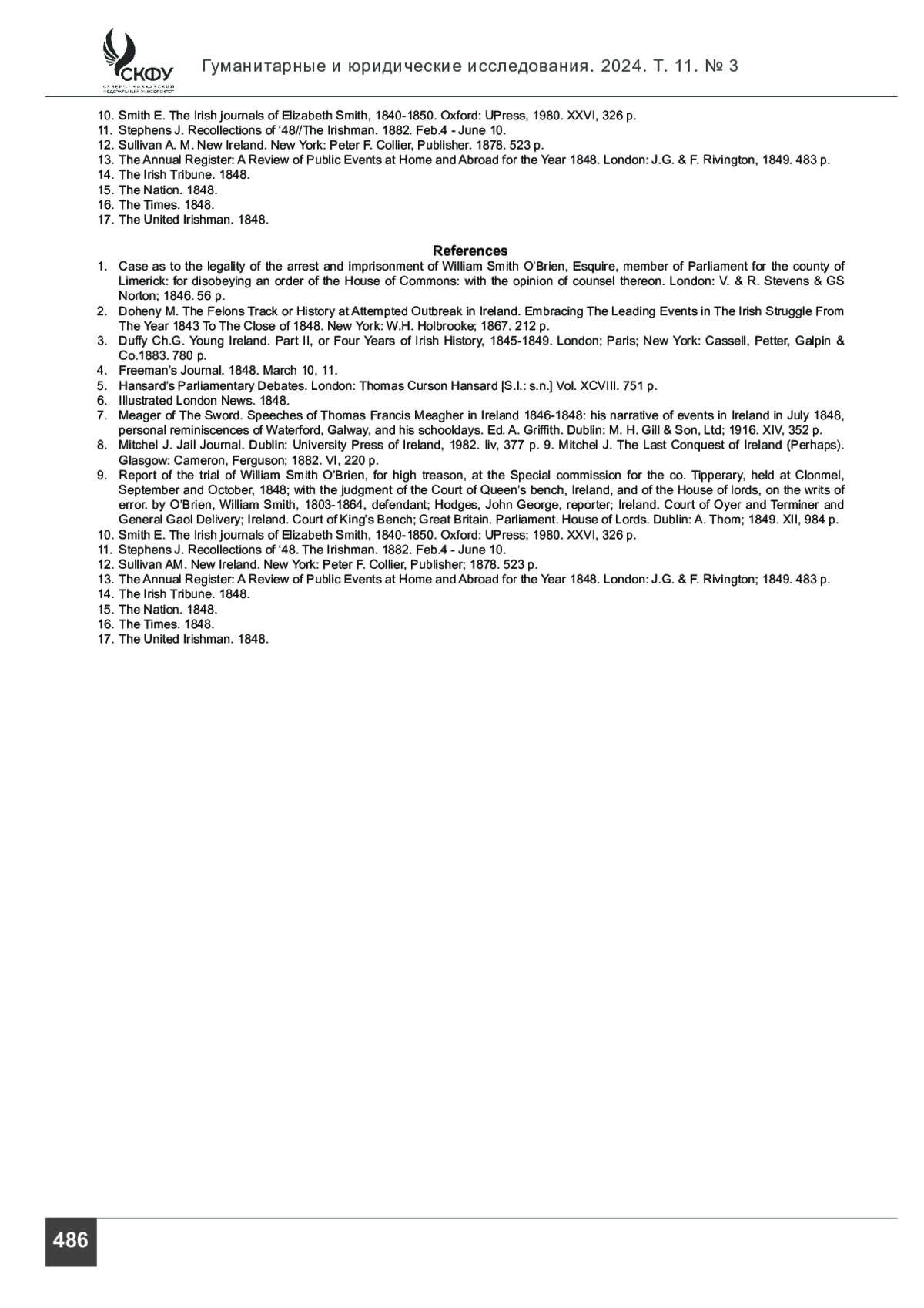 3. Duffy Ch. G. Young Ireland. Part II, or Four Years of Irish History, 1845-1849. London; Paris; New York: Cassell, Petter, Galpin & Co.1883. 780 p.