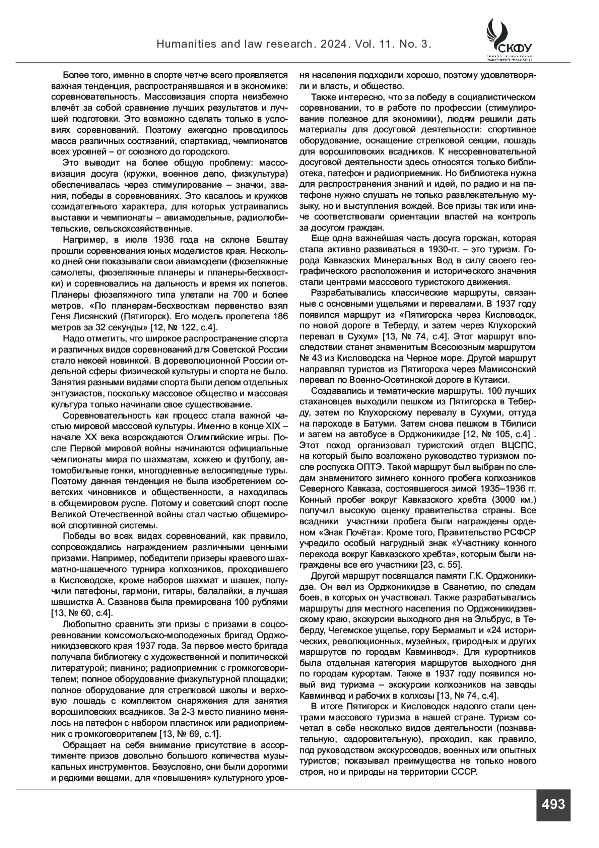 Результаты. Сделан вывод о важности для власти постоянного контроля даже за формами и содержанием проведения свободного времени молодежи и детей. Определен акцент властных усилий на организации кружков различного рода, массовизации досуга и соревновательности как важнейшей черты не только спортивного сектора досуга, но и творческих кружков созидательного характера. При этом проведение множества различных состязаний выделено как часть общемировых тенденций. Подчёркнута важность создаваемой системы туризма, где города Кавказских Минеральных вод становились не только географическими, но и организационными центрами. Разрабатываемые маршруты сочетали в себе реализацию познавательного интереса к объектам природы, культуры и важнейших событий из «нового советского» прошлого.