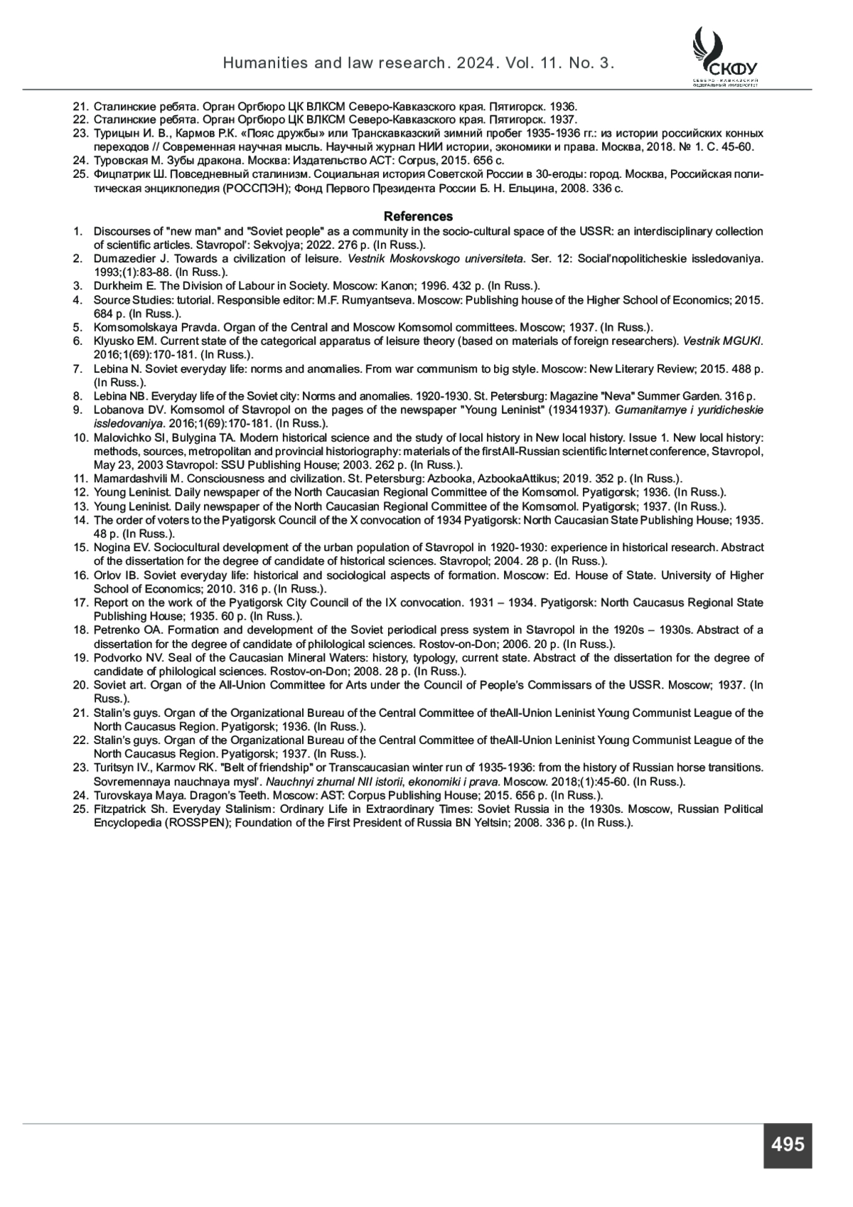 1. Дискурсы «новый человек» и «советский народ» как общность в социокультурном пространстве СССР: междисциплинарный сборник научных статей. Ставрополь: Секвойя, 2022. 276 с.