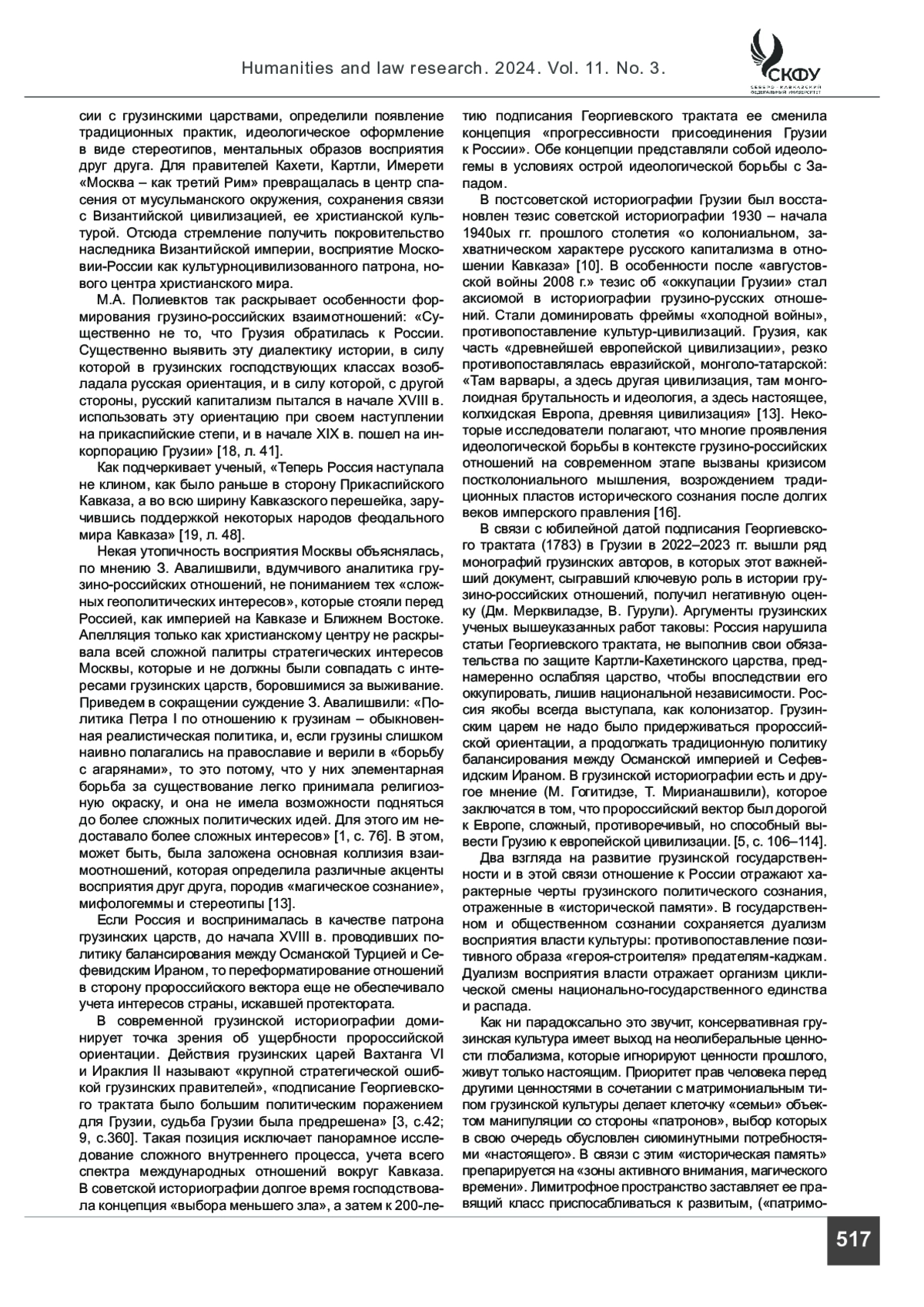 6. Кирчанов М. В. Историческая политика в Грузии. Грузинская историография и политика памяти между «изобретенными традициями и большими нарративами» // Событие в истории, памяти и нарративах идентичности / под ред. Л. П. Репиной. М.: Аквилон, 2017. С. 340-381.