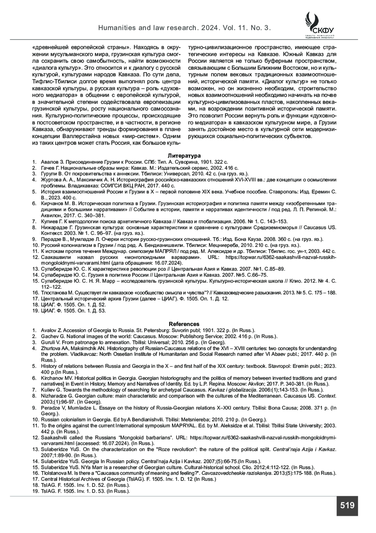 15. Сулаберидзе Ю. С. Н. Я. Марр - исследователь грузинской культуры. Культурно-историческая школа // Клио. 2012. № 4. С. 112-122.