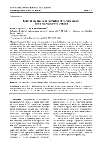 6. 	Апажев А. К., Шекихачев Ю. А., Хажметов Л. М. Рациональные параметры и режимы работы комбинированного почвообрабатывающего шлейфа // Известия Горского государственного аграрного университета. 2016. Т. 53. № 2. С. 146-151. EDN: WCFZUP