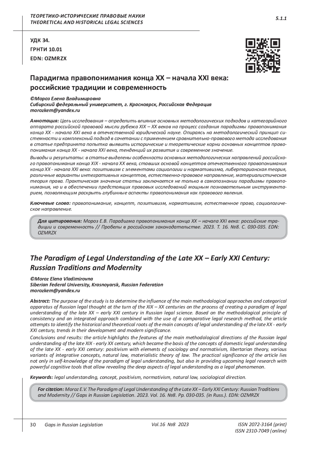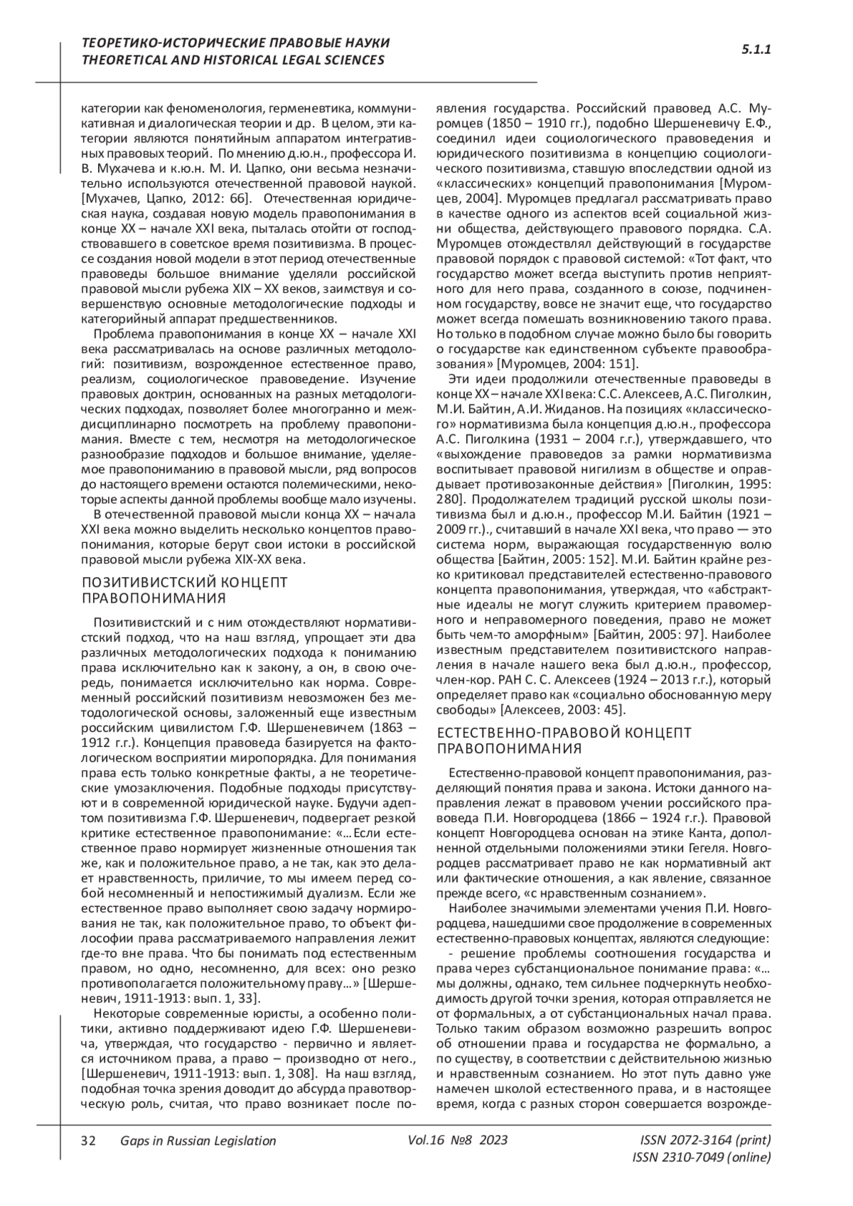 Meleshko O.P. Integrative concepts of legal understanding of modern Russian legal science // Gaps in Russian legislation. 2017. Vol. 6. pp. 144 - 146.