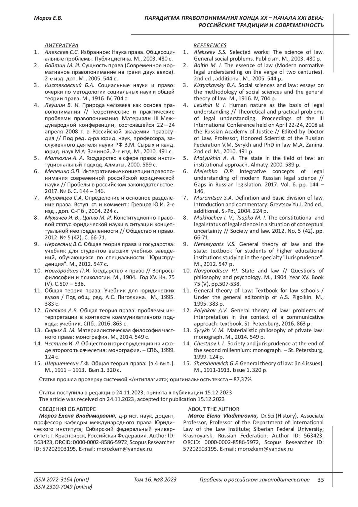 6. Мелешко О.П. Интегративные концепции правопонимания современной российской юридической науки // Пробелы в российском законодательстве. 2017. № 6. С. 144 - 146. EDN: YKXHBD