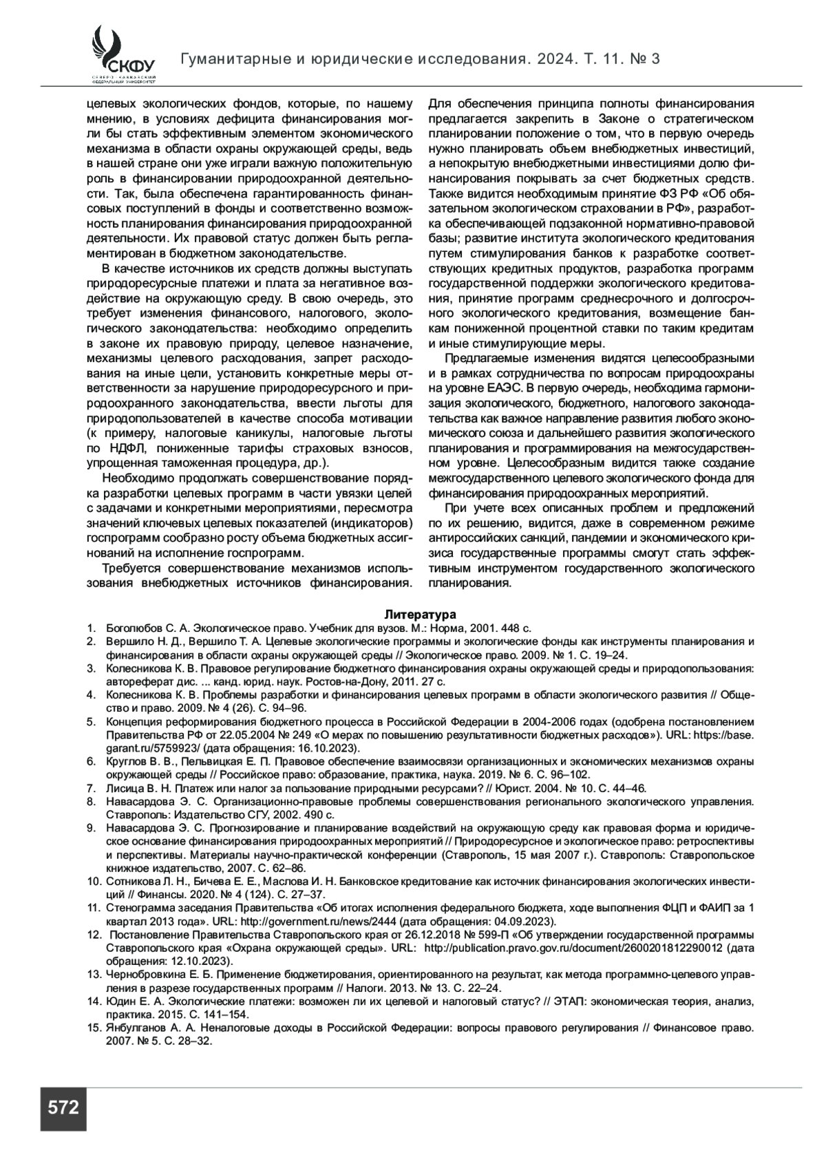 8. Навасардова Э. С. Организационно-правовые проблемы совершенствования регионального экологического управления. Ставрополь: Издательство СГУ, 2002. 490 с.