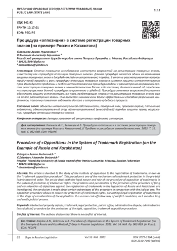 11. 	Лавринович Р.Д. Порядок предоставления правовой охраны товарным знакам в зарубежных странах. Особенности процедуры оппозиции // Образование и право. 2019. № 12. С. 234-240. EDN: BZQMOT