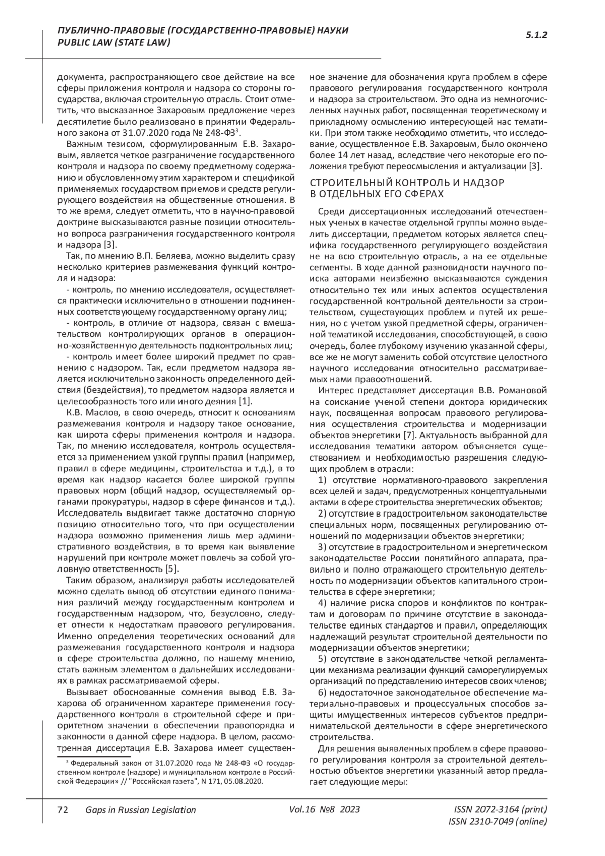 Zakharov E.V. “Administrative control and supervision in the field of construction”: Dis… candidate of legal sciences: Moscow, 2009.