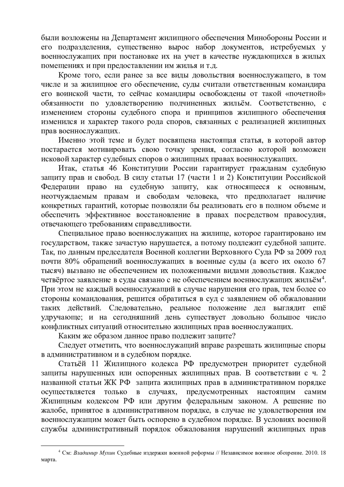 Глухов, Е. А. Запрещено ли военнослужащим обращаться в суды по спорам о нарушении органами военного управления их жилищных прав с исковыми заявлениями? / Е. А. Глухов // Право в Вооруженных Силах - Военно-правовое обозрение. – 2011. – № 10(172). – С. 80-88. – EDN RIMNBR.