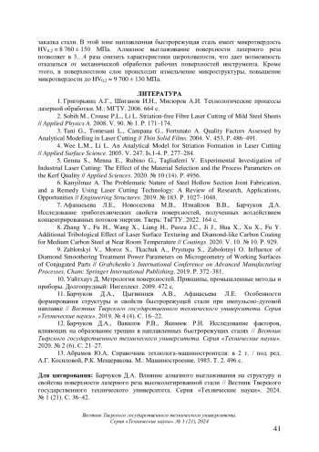 1. 	Григорьянц А.Г., Шиганов И.Н., Мисюров А.И. Технологические процессы лазерной обработки. М.: МГТУ. 2006. 664 с.  EDN: WPEVRY