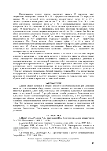 9. Архаров А.П. Патрон клиновой механизированный для установки заготовки на центрах токарного станка // Вестник Тверского государственного технического университета. Серия “Технические науки”. 2020. № 1 (5). С. 21-26. EDN: GEJODN
