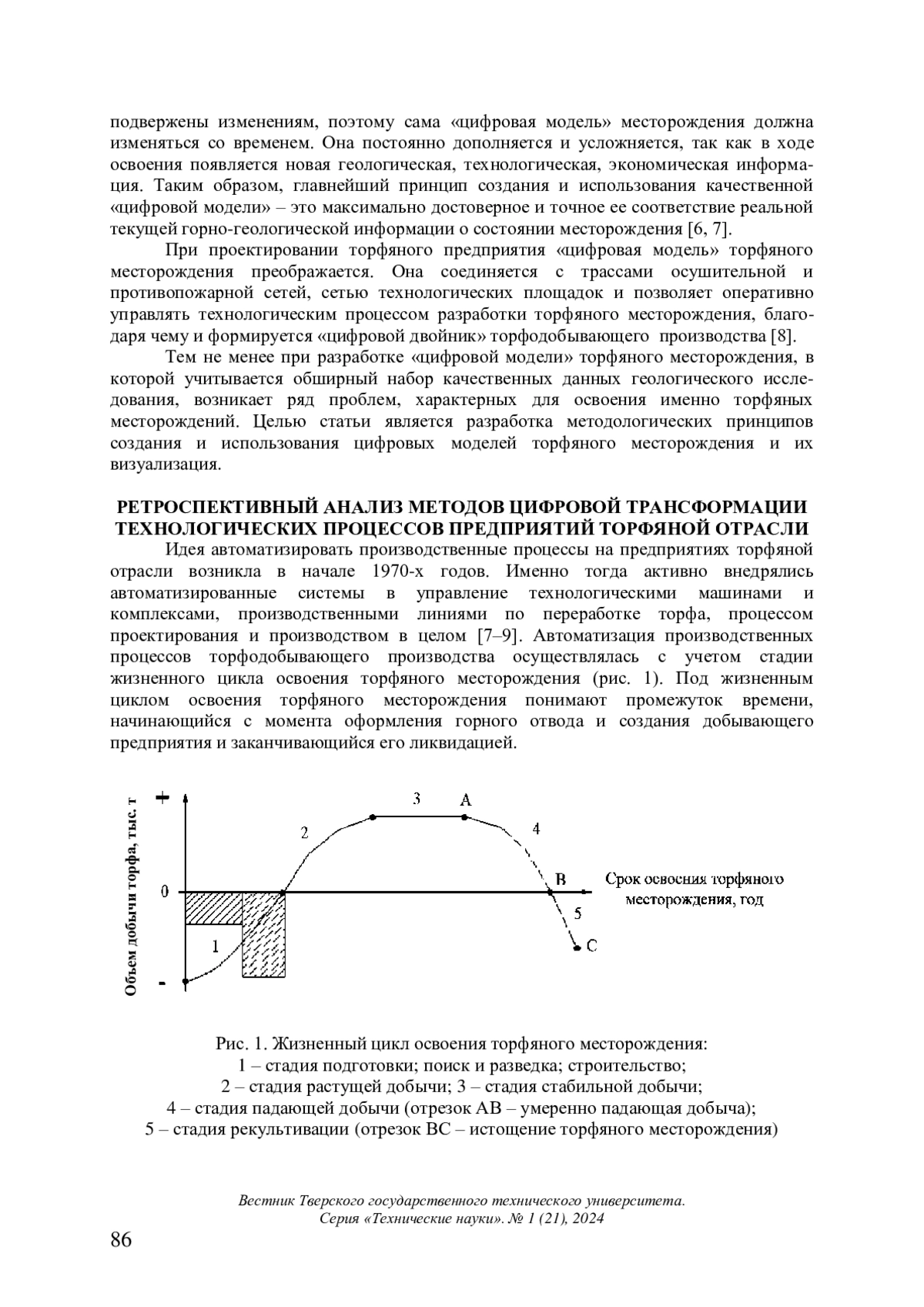 В статье описана методология геомоделирования торфяного месторождения. Показаны принципы создания и использования цифровой модели торфяного месторождения. Проведена оценка торфяного производства как информационного объекта. Описаны особенности применения геоинформационных систем в условиях предприятий по добыче торфа, а также источники исходной информации, необходимые для геомоделирования объектов торфодобывающих производств