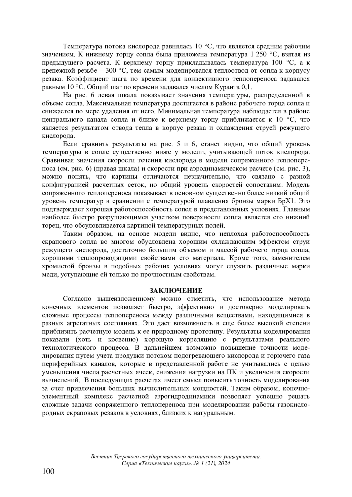 В статье представлены основные результаты CAE-моделирования температурных процессов, происходящих в сопле скрапового резака при раскрое скрапа толщиной более 800 мм. Показано распределение температуры в теле сопла при его охлаждении струей режущего кислорода. Рассмотрены особенности создания расчетных моделей теплопереноса с поверхности скрапа на рабочий торец сопла, а также проведены сопряженные вычисления температурных полей в теле сопла при холодной продувке струей режущего кислорода центрального канала.