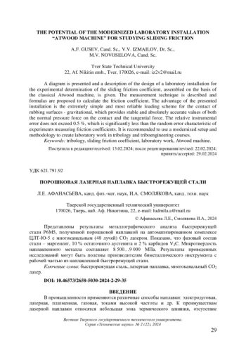 10. 	Афанасьева Л.Е., Сахаров К.А. Порошковая лазерная наплавка износостойкого композиционного покрытия // Вестник Тверского государственного технического университета. Серия “Технические науки”. 2024. № 1 (21). С. 21-26.  EDN: GGKCBD
