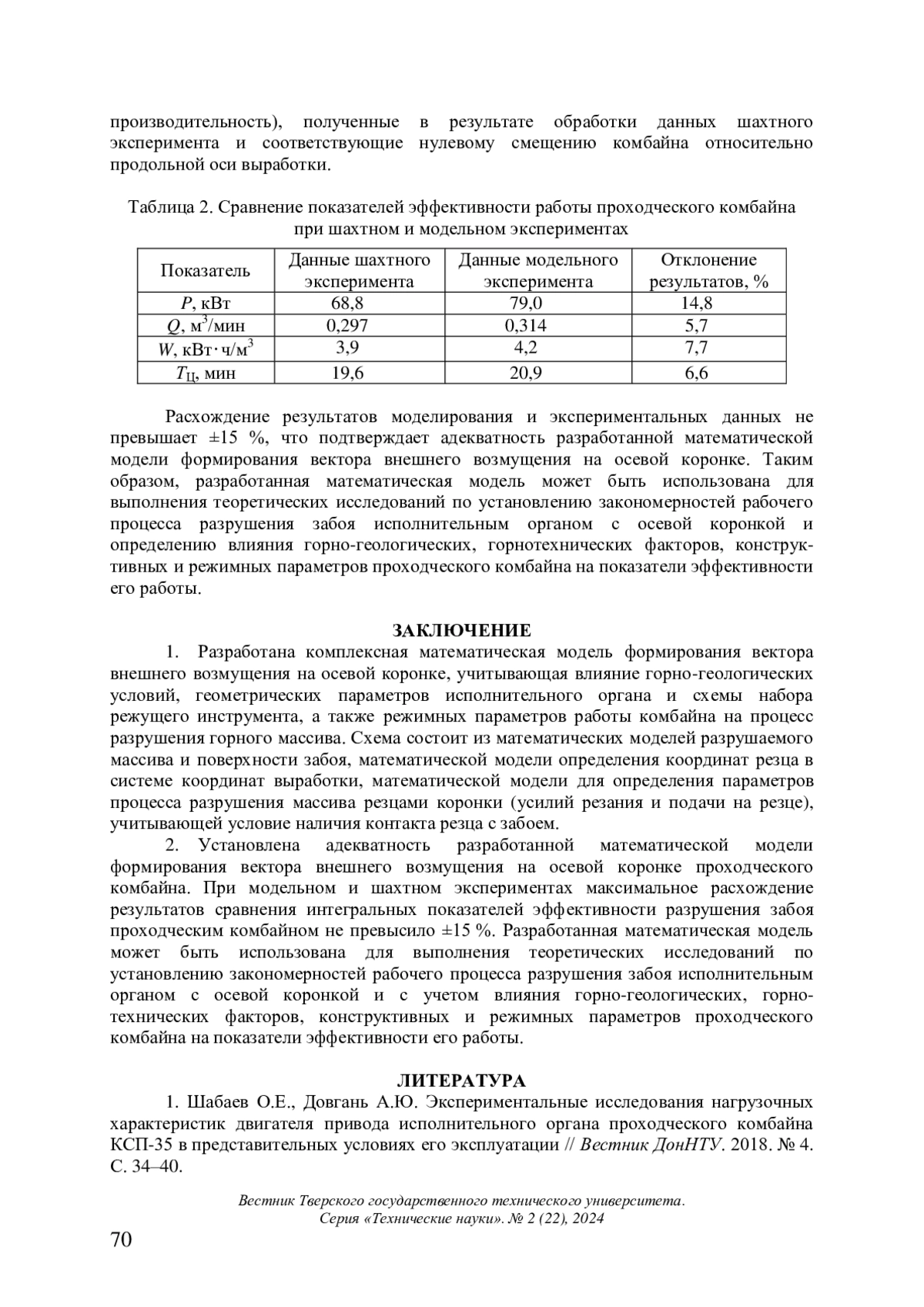 1. 	Шабаев О.Е., Довгань А.Ю. Экспериментальные исследования нагрузочных характеристик двигателя привода исполнительного органа проходческого комбайна КСП-35 в представительных условиях его эксплуатации // Вестник ДонНТУ. 2018. № 4. С. 34-40.  EDN: PKVTGD