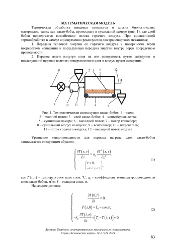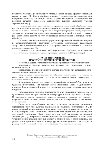 Являясь важнейшим сырьем для производства шоколада и многих других продуктов на его основе, какао-бобы проходят различные технологические процессы, прежде чем попасть к конечному потребителю. Термические подпроцессы представляют собой значительную часть переработки какао, при которой какао-бобы, пасту или смесь в течение определенного времени подвергают воздействию повышенной температуры, чтобы сделать их пригодными для обработки, потребления. Основная цель термической обработки – продлить срок хранения за счет снижения количества бактерий до приемлемого уровня, а также придать продукту желаемый аромат и вкус. [1] Среди наиболее известных термических подпроцессов при переработке какао ‒ сушка бобов, их обжарка и сушка растворимого какао-порошка. На конечное качество какао-бобов существенное влияние оказывают условия термообработки
