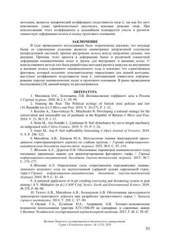 1. 	Мисников О.С., Копенкина Л.В. Возникновение торфяного дела в России // Горный журнал. 2020. № 2. С. 95-99.  EDN: BIDCNT