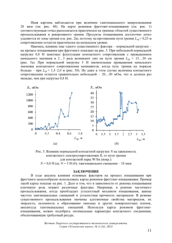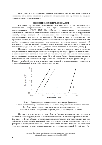 Изнашивания при фреттинге и фреттинг-коррозии достаточно распространены и опасны. Одной из разновидностей контактных соединений, в которых наблюдается этот вид изнашивания, являются электрические контакты [1, 2]. Из многочисленных факторов, влияющих на интенсивность изнашивания при фреттинге, выделяют три основных: окружающую среду, параметры контакта и свойства материалов контактирующих деталей. Первый фактор обычно задан назначением и режимом работы контактного соединения, тогда как в выборе материалов контактирующих деталей и параметров контакта имеется определенная свобода. Выбор оптимальных материалов и параметров контакта может существенно повысить надежность электроконтактного соединения. При этом указанный выбор должен происходить исходя из назначения контактного соединения с учетом характера процесса фреттингизнашивания и механизма влияния того или иного фактора на этот процесс, иными словами, на основании понимания физики процесса фреттинг-изнашивания.
