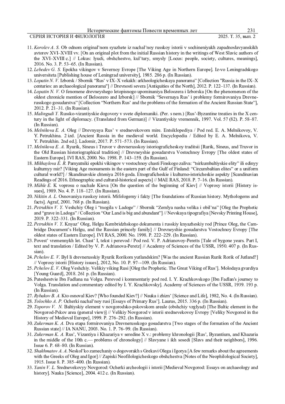 14. 	Лопатин Н. В. О феномене древнейшего летописного упоминания Белоозера и Изборска // Сборник материалов Международной научной конференции “Северная Русь и проблемы формирования Древнерусского государства”, 2012. С. 21-31. EDN: SNIPPZ