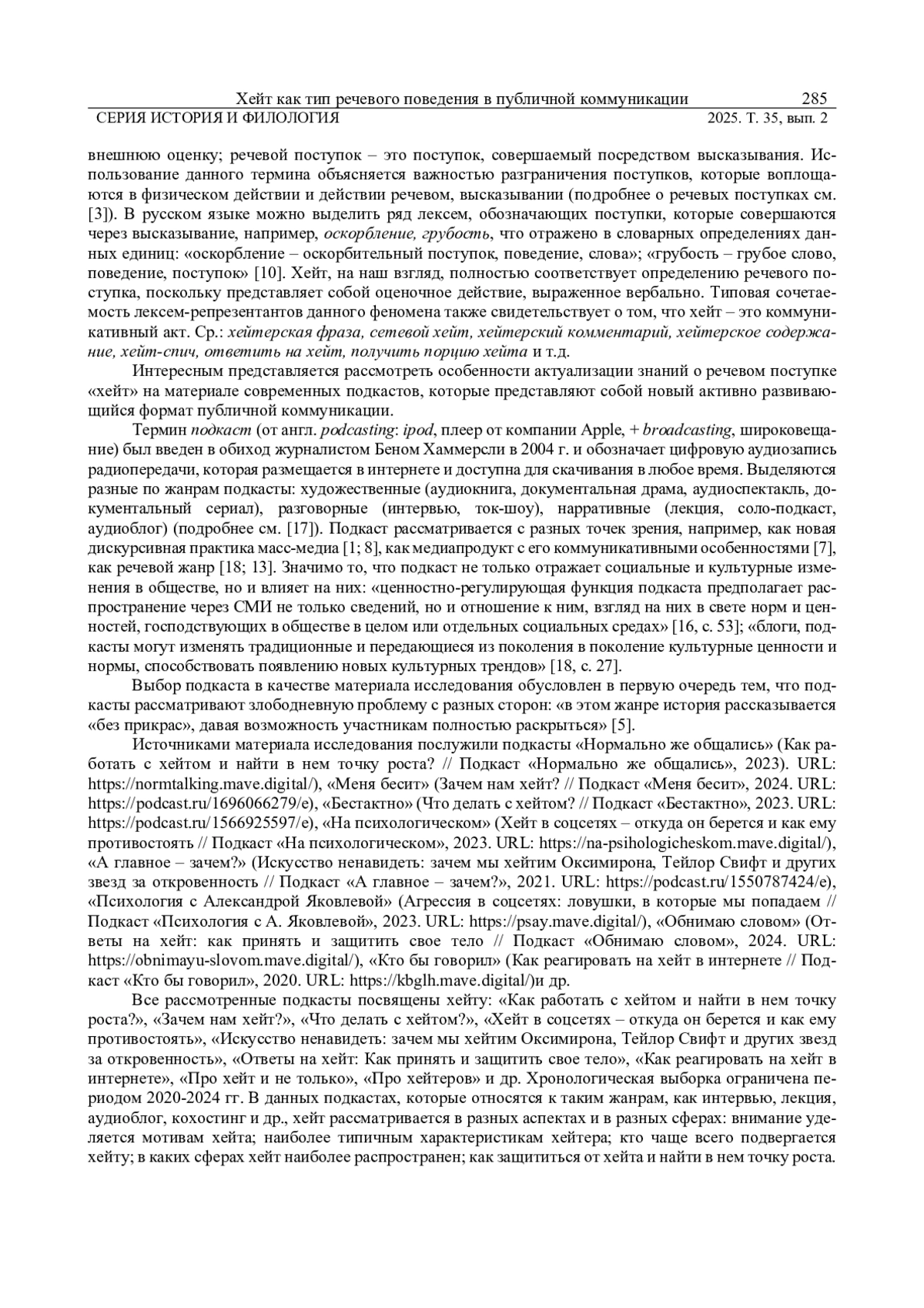 17. 	Хакимова Е. М. Русскоязычные подкасты как современная дискурсивная практика // Вестник Томского государственного университета. Филология. 2023. № 84. С. 72-96.