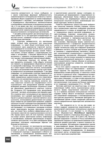 Материалы и методы. Эмпирическим материалом статьи послужили как отечественные, так и зарубежные исследования, монографические работы, толковые словари, а также учебные пособия в области медиа. Кроме общенаучных исследовательских методов базой работы стал герменевтический анализ, а именно лексико-герменевтическая технология анализа. Данная технология была углублена за счет двух методов: дефиниционного анализа словарных статей и структурно-ноэматического метода.