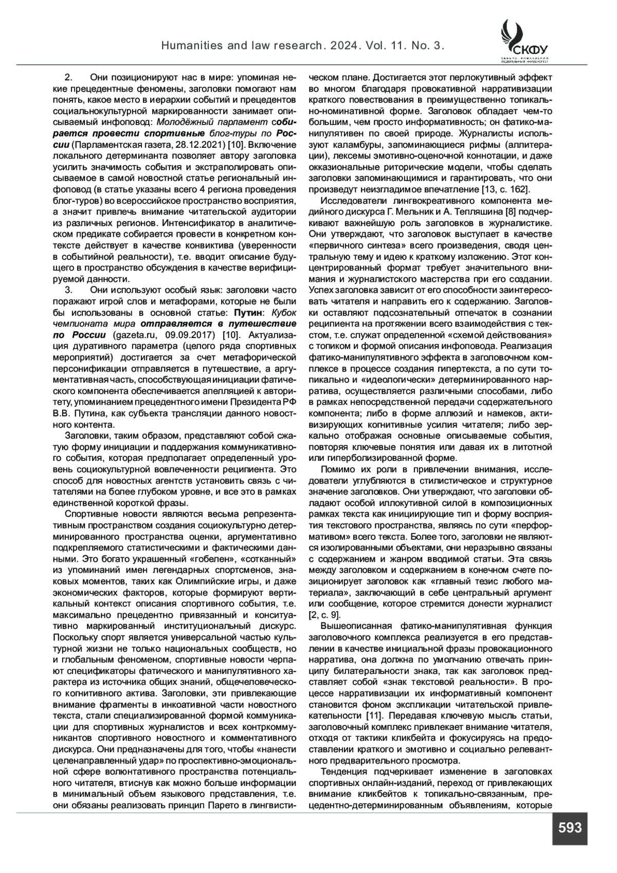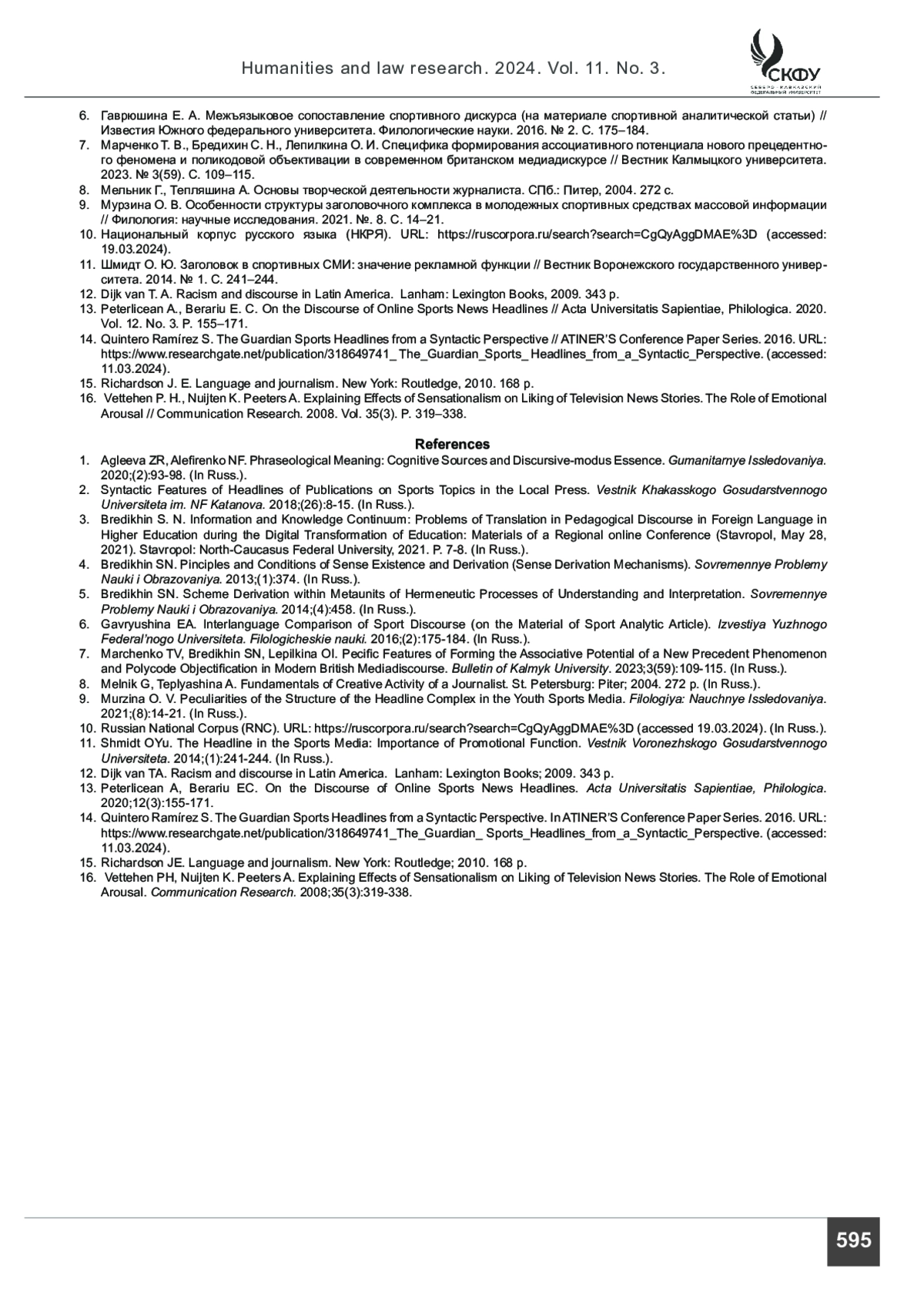 13. Peterlicean A., Berariu E. C. On the Discourse of Online Sports News Headlines // Acta Universitatis Sapientiae, Philologica. 2020. Vol. 12. No. 3. P. 155-171.