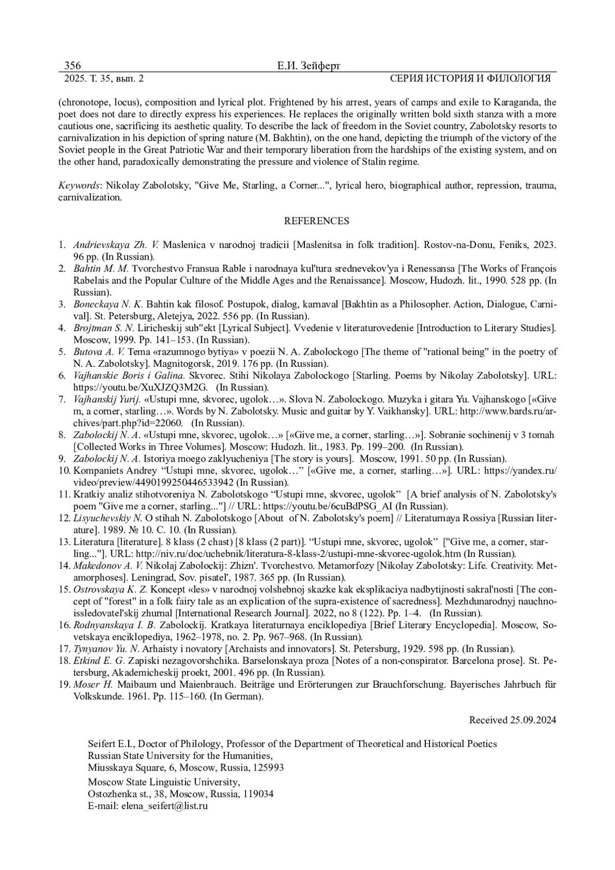 6. 	Вайханские Борис и Галина. Скворец. Стихи Николая Заболоцкого // URL: https://youtu.be/XuXJZQ3M2G.