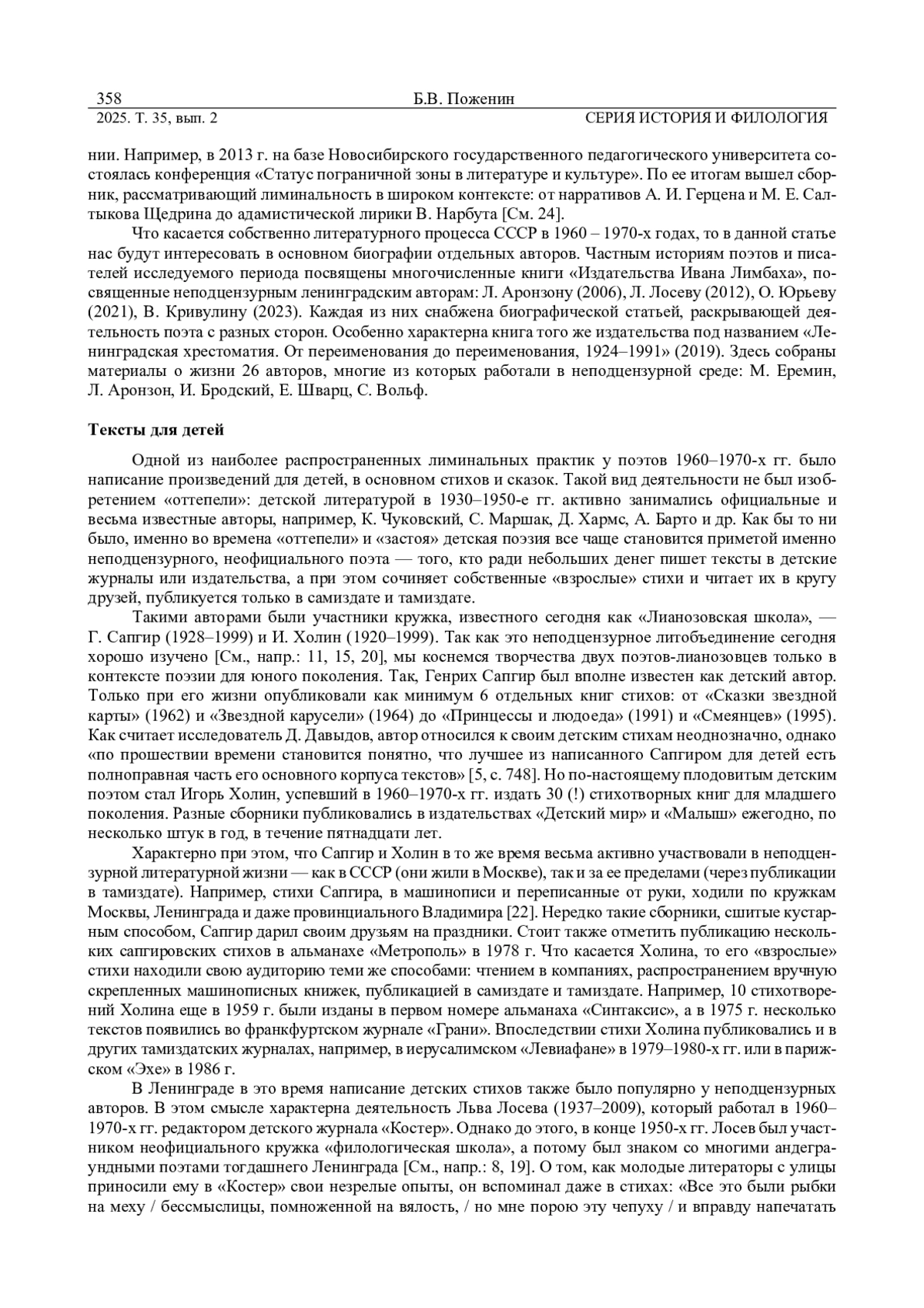 22. 	Сапгир об авторах и группах // Неофициальная поэзия. 1997. URL: https://rvb.ru/np/publication/sapgir2.htm#27. (дата обращения: 17.04.2024).