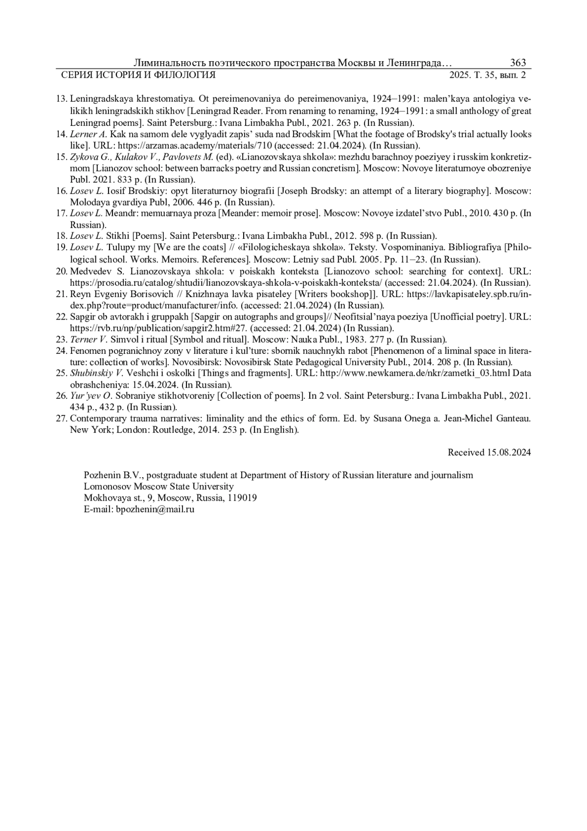 15. 	“Лианозовская школа”: между барачной поэзией и русским конкретизмом / Под ред. Г. Зыковой, В. Кулакова, М. Павловца. М.: Новое литературное обозрение, 2021. 833 с.