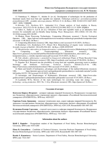 8. 	Отходы овощей и фруктов: виды, переработка и повторное использование// rcycle.net [Электронный ресурс]. URL: https://rcycle.net/othody/pishhevye/ovoshhej-i-fruktov-pererabotka-ispolzovanie (дата обращения 10.12.2024).