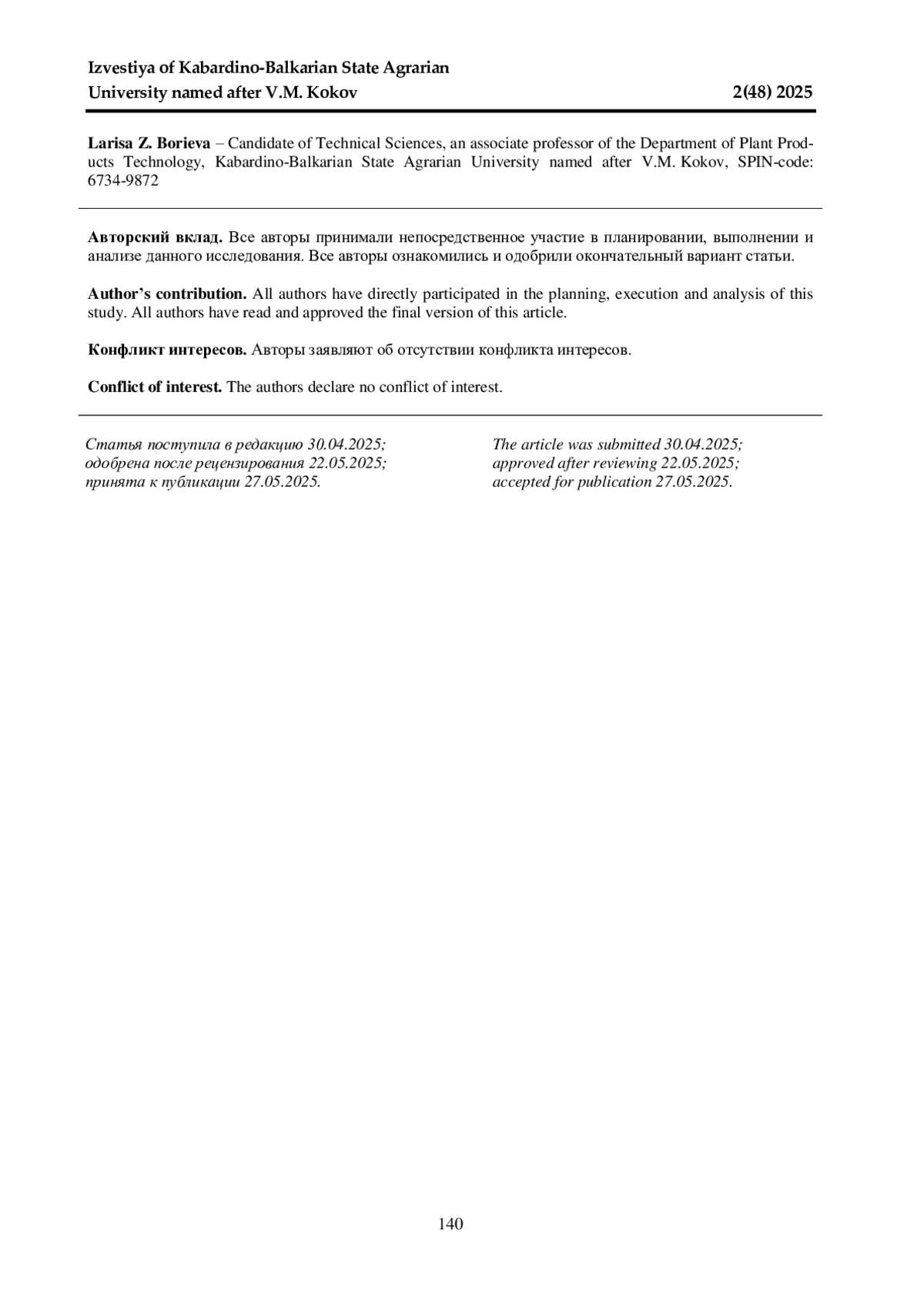 1. 	Бориева Л. З., Тамахина А. Я., Ахкубекова А. А. Формирование показателей качества пшеничного хлеба при добавлении настоя медуницы мягкой (Pulmonaria mollis) // Новые технологии. 2019. Вып. 3(49). С. 20-29. DOI: 10.24411/2072-0920-2019-10302 EDN: TCXJSC