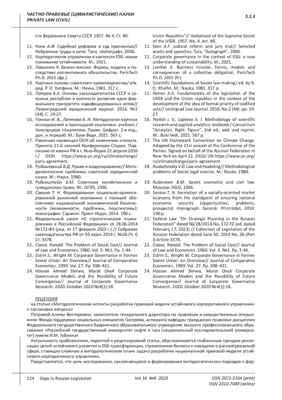12. 	Корпоративное управление в контексте ESG: новое понимание устойчивости. М., 2021.