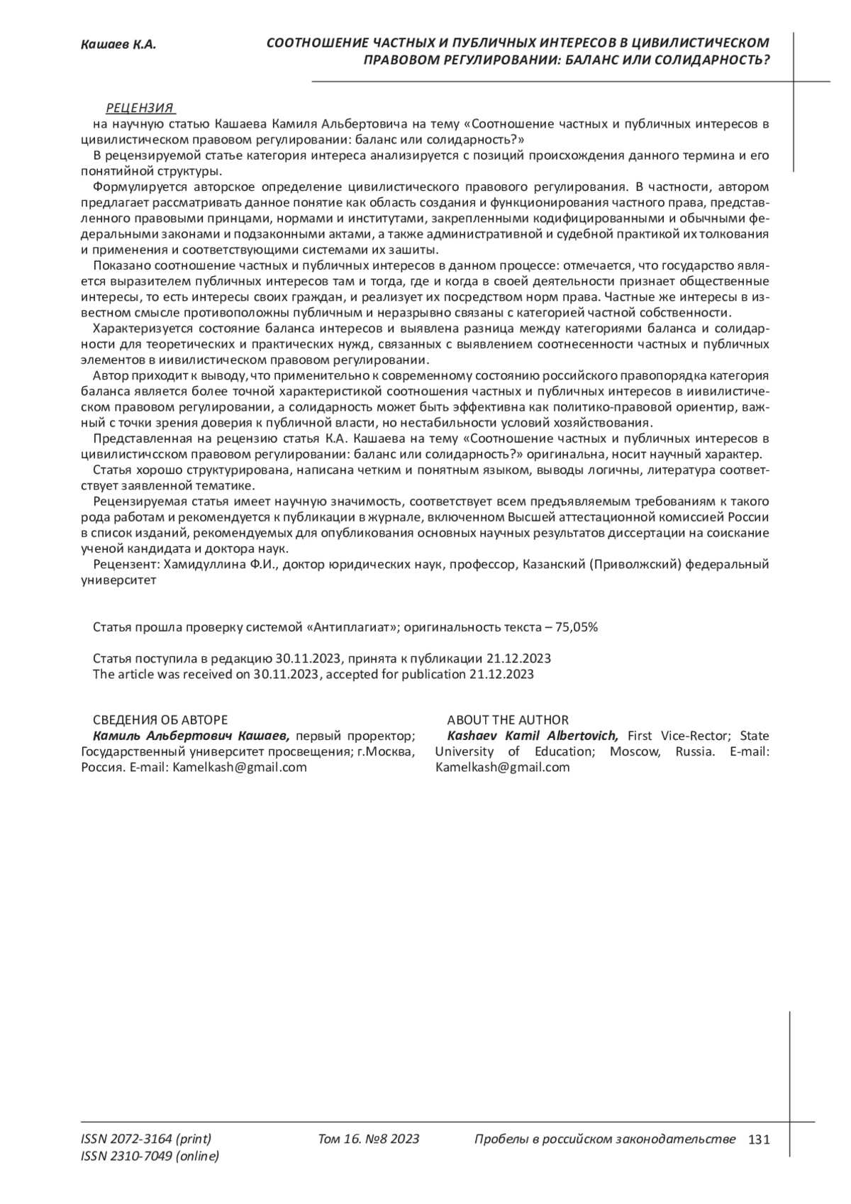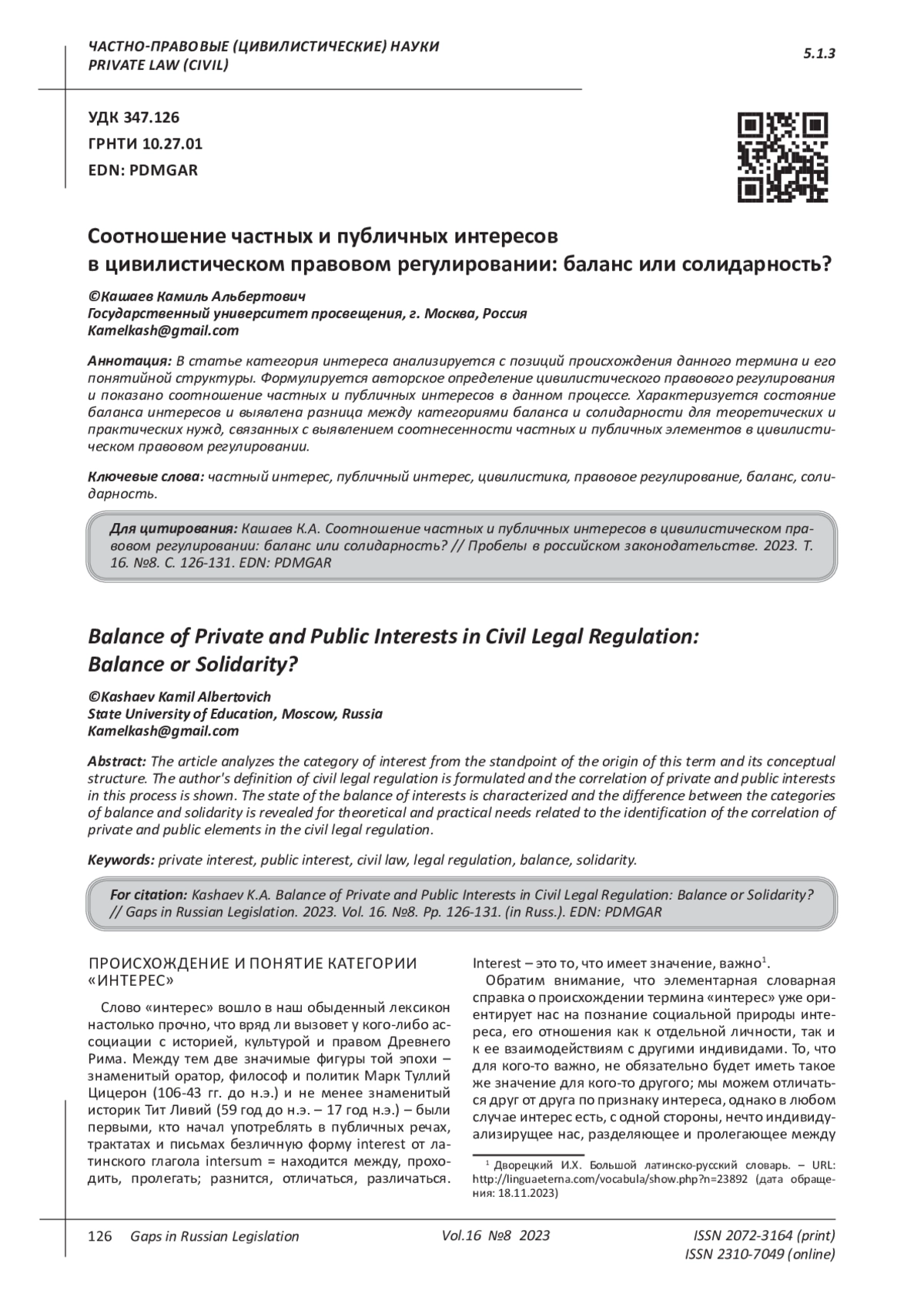 Kravchenko, O.Y. Public and private interests in law: political and legal research: diss…. cand. jurid. sciences’. Kazan, 2004. 156 p. EDN: NNDDON